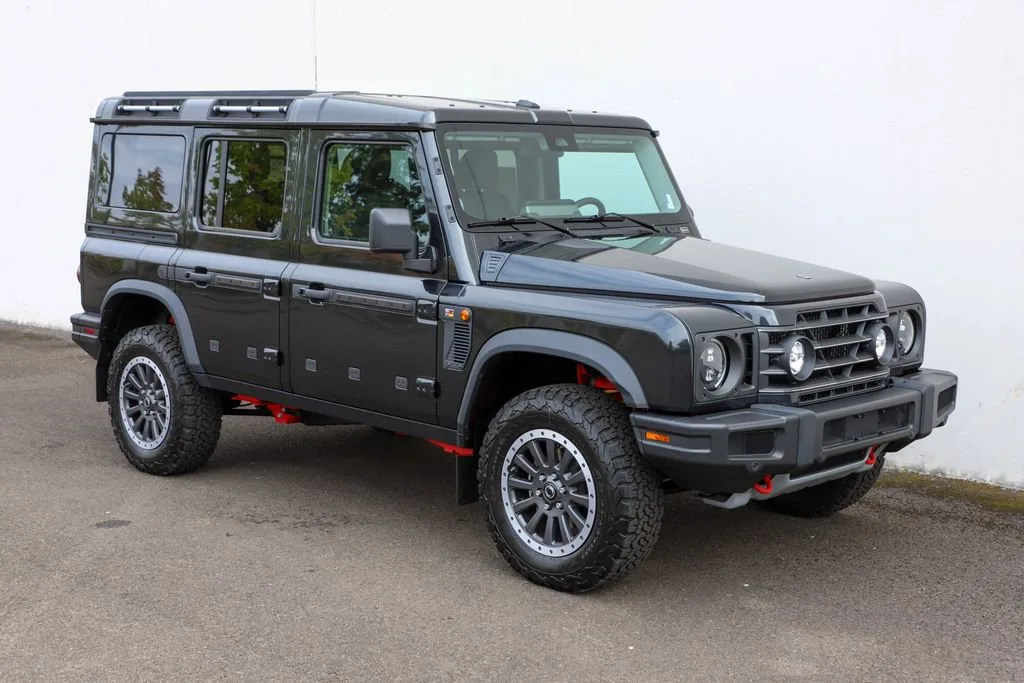 **Tariff Relief Pricing $85660.00** 2025 INEOS Grenadier Fieldmaster Edition in Donny Gray over Black w/Leather Seat Trim. Major Options include Differential Locks Front & Rear, Class III NAS Tow Hitch and Electrics, Safari Windows, Heat Reflective Privacy Glass, Contrast Ladder Frame - HALO Red, Premium Sound System, Compass with Altimeter, Heated Front Seats, Leather Trim - Black, Acccess Ladder, Carpet Floor Mats, Locking Wheel Nuts, 18" Alloy Wheels, BFGoodrich All-Terrain T/A KO2 Tires, Rough Pack. Call 503.255.7560 for complete details.