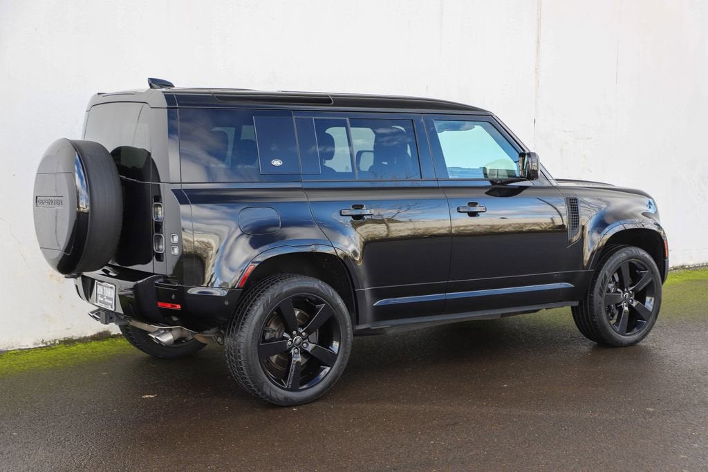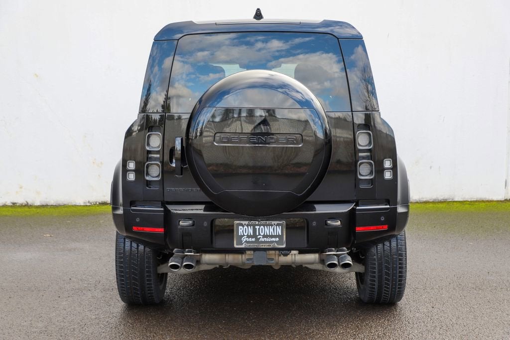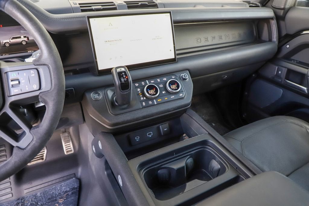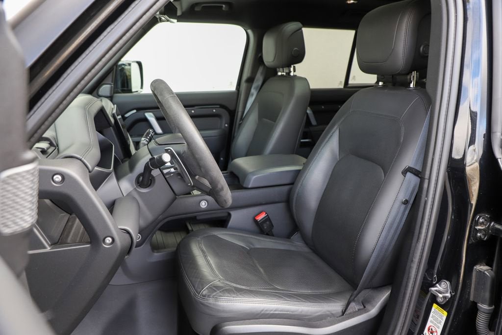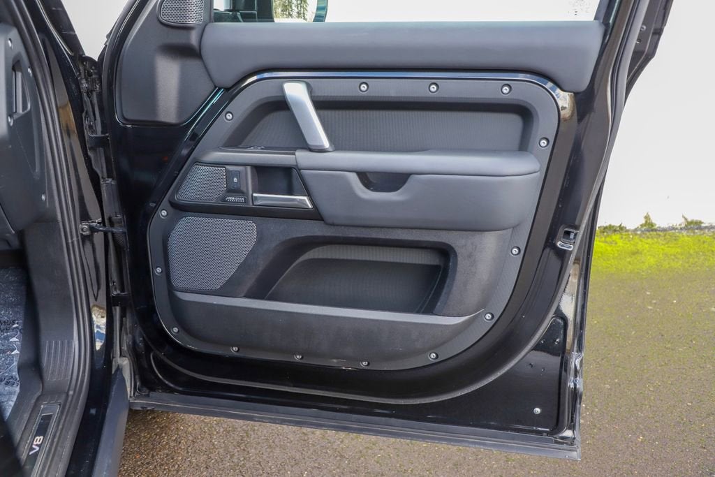 Introducing the 2024 Land Rover Defender 110 V8 - a true icon of off-road capability and refined luxury. This exceptional vehicle is the perfect blend of power, performance, and style, designed to elevate your driving experience to new heights. - Extended Black Exterior Pack - Connected Navigation PIVI Pro - 700W 15 Speaker Meridian Surround Sound System - Front dual zone A/C - Heads-Up Display - Adaptive suspension - Power moonroof - Auto High-beam Headlights - Gloss Black Front Grille - 14-Way Climate Electric Memory Front Seats - Apple CarPlay & Android Auto - Heated rear seats - Ventilated front seats - Wheels: 22" Gloss Black Finish Style 5098 Beneath the striking exterior lies a heart of pure power - a 5.0L V8 engine that delivers an exhilarating 4WD driving experience. With 8-speed automatic transmission and exceptional fuel efficiency, this Defender 110 V8 is ready to take on any terrain with confidence and ease. The attention to detail is evident in every aspect of this vehicle. From the premium Windsor Leather/Dinamica Suedecloth & Robustec Seat Trim to the advanced Adaptive Suspension, every feature has been meticulously crafted to provide you with the ultimate in comfort and control. Safety is also a top priority, with a comprehensive suite of advanced driver-assistance technologies, including Blind Spot Monitoring, Rear Cross-Traffic Alert, and a Surround-View Camera System. You can rest assured that you and your passengers will be protected on every journey. Whether you're tackling the great outdoors or navigating the urban jungle, the 2024 Land Rover Defender 110 V8 is the perfect companion. Its uncompromising capability, refined luxury, and cutting-edge technology make it a truly exceptional vehicle that will elevate your driving experience to new heights. Experience the power and prestige of the 2024 Land Rover Defender 110 V8 for yourself. Visit our showroom today and let us demonstrate why this iconic SUV is the perfect choice for your next adventure.