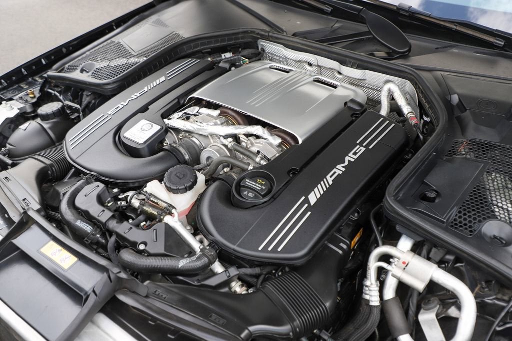 Elevate your driving experience with this exceptional 2018 Mercedes-Benz C-Class C 63 AMG®. This high-performance sedan combines exhilarating power, refined luxury, and advanced technology, making it the ultimate choice for the discerning automotive enthusiast. Boasting a striking black exterior, this C 63 AMG® is equipped with a remarkable array of features that elevate the driving experience: - Multimedia Package - Burmester® Premium Sound System - COMAND® DVD Player - Power Driver Seat & Steering Column w/Memory - Power Passenger Seat w/Memory - COMAND® Navigation with 3 Years of Map Updates - Sport Steering Wheel - Touchpad - 4-Way Driver's Lumbar Support - Heated Front Seats - Power Moonroof - 18" AMG® Twin 5-Spoke Wheels Beneath the sleek exterior lies a heart-pounding 4.0L V8 engine, mated to a responsive 7-Speed Automatic transmission. Step inside this C 63 AMG® and be captivated by the premium Burmester® sound system, which envelops you in a concert-hall-quality audio experience. The COMAND® navigation system with 3 years of map updates ensures you'll always find your way, while the power-adjustable front seats with memory settings provide unparalleled comfort and support. Designed for the true enthusiast, this C 63 AMG® comes equipped with a host of performance-enhancing features, including an adaptive suspension, speed-sensing steering, and high-performance tires that deliver exceptional handling and control. Safety is also a top priority, with a comprehensive suite of advanced driver assistance technologies, including Blind Spot Assist and a Rear View Camera, to help keep you and your passengers secure. This exceptional 2018 Mercedes-Benz C-Class C 63 AMG® is a testament to the brand's commitment to engineering excellence and uncompromising quality.